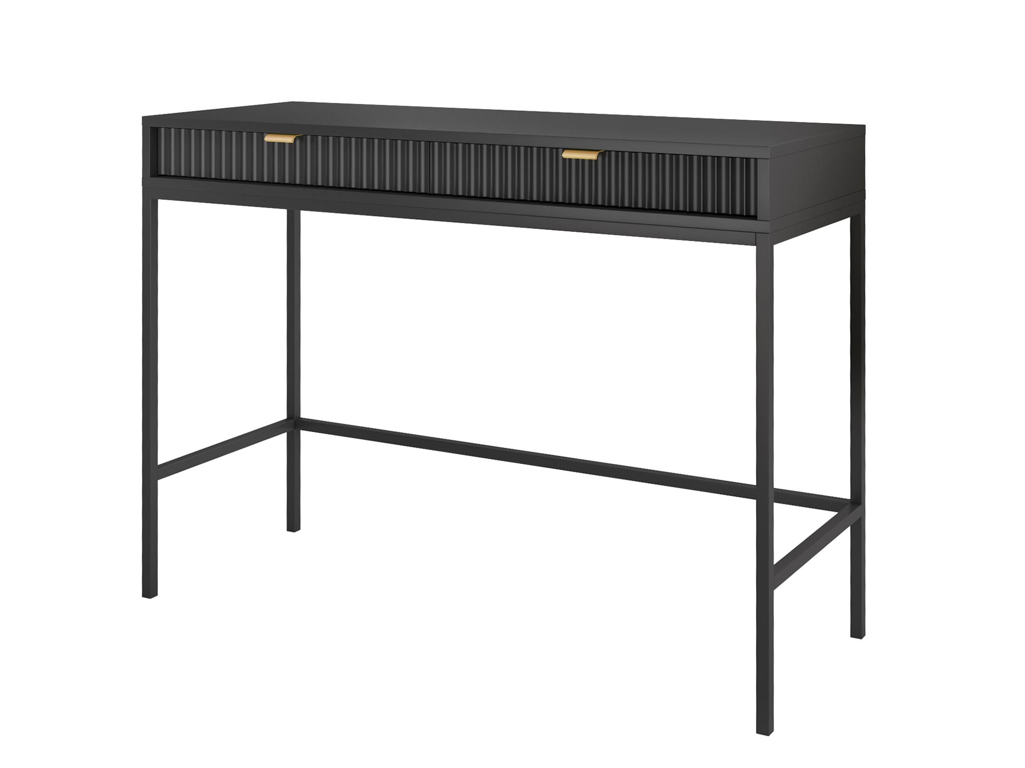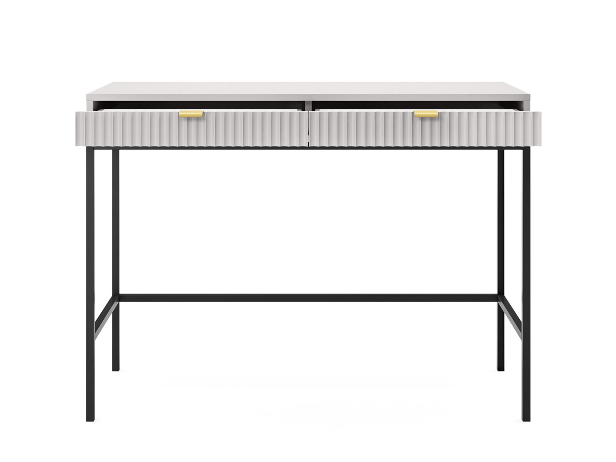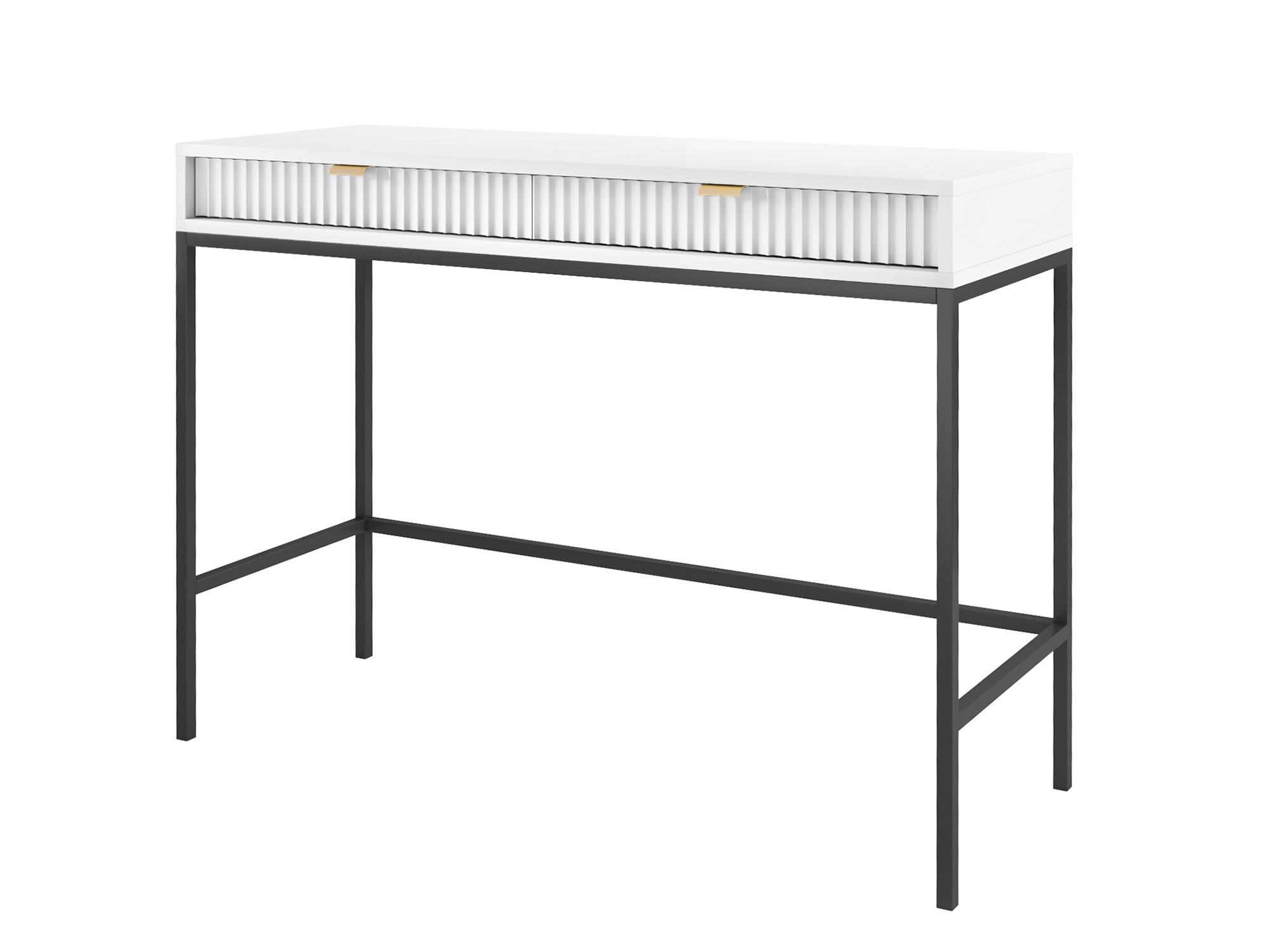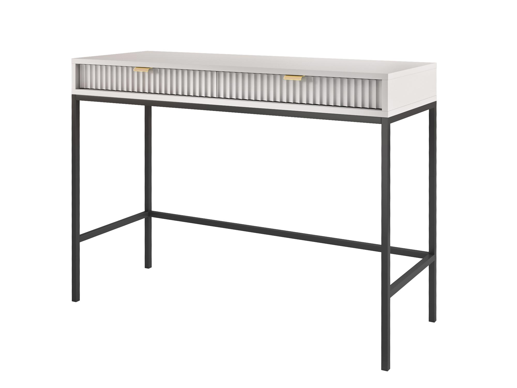 Toaletka Sivas jest kwintesencją elegancji i funkcjonalności, łącząc w sobie nowoczesny design z praktycznym wykorzystaniem. Dzięki unikalnej kombinacji złotych uchwytów i ryflowanych frontów, dostępnych w trzech kolorach: czarnym, szarym i białym, toaletka ta staje się centralnym punktem każdej sypialni czy garderoby, oferując nie tylko przestrzeń do przechowywania, ale i niepowtarzalny styl.