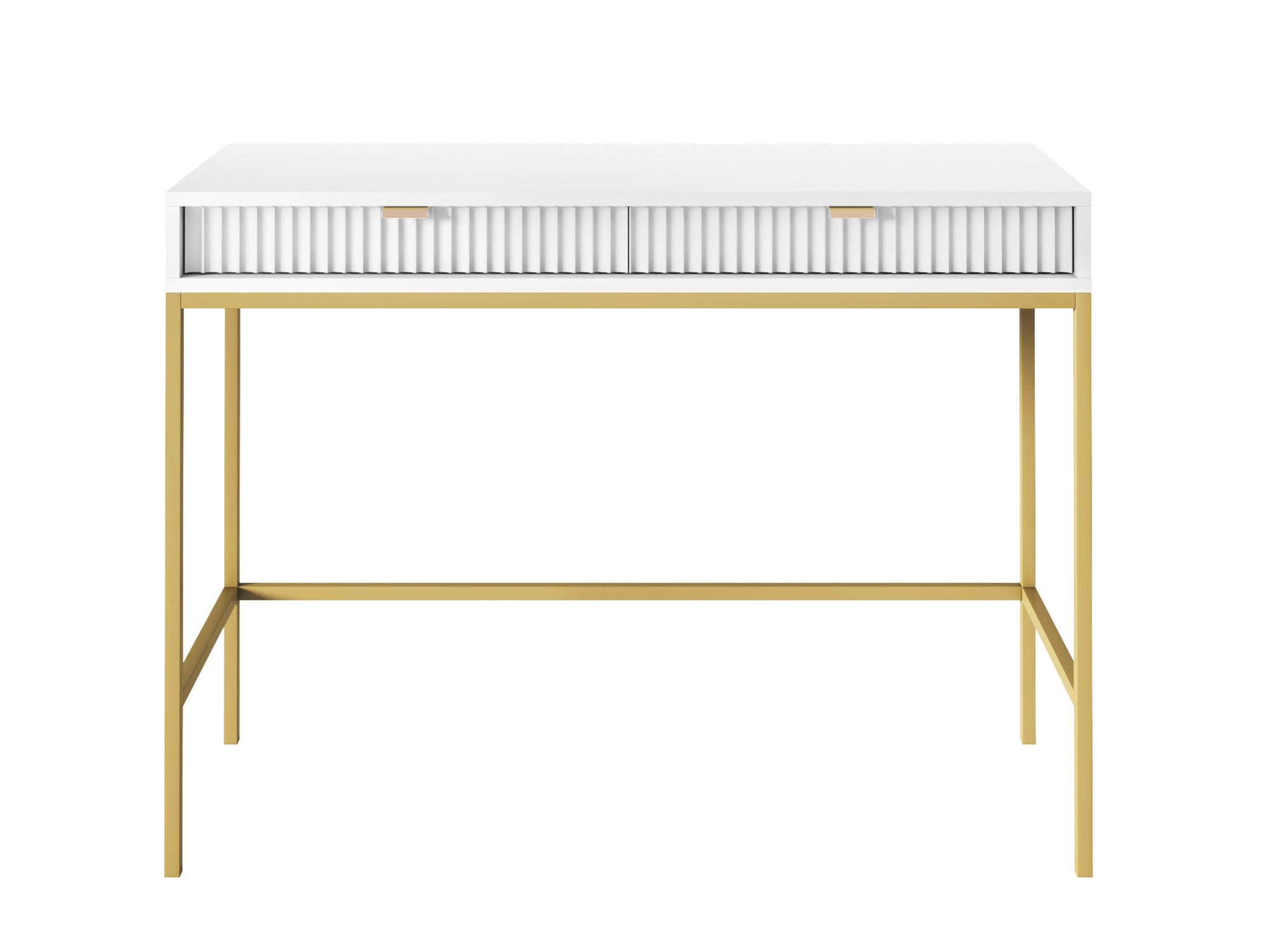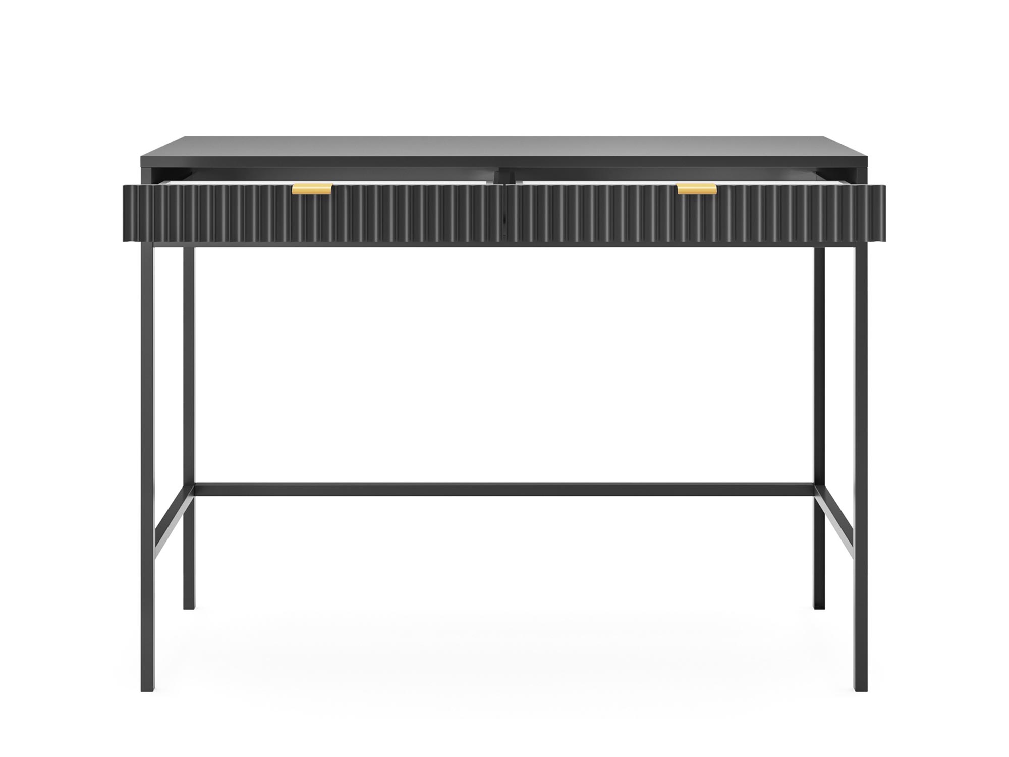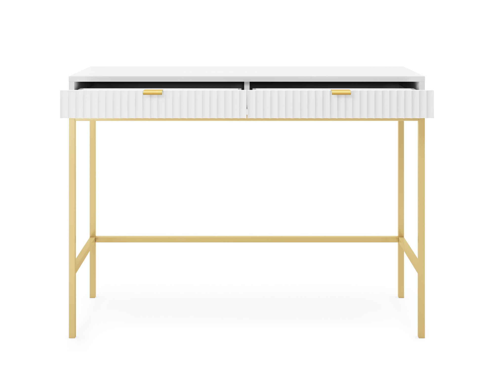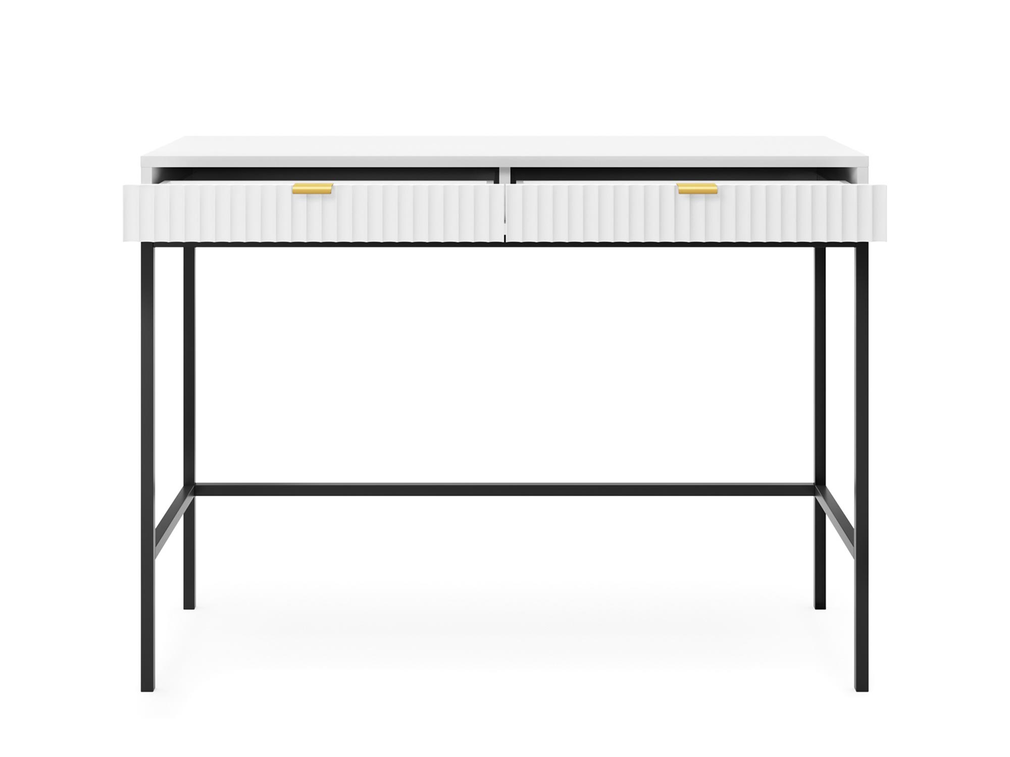 Toaletka Sivas jest kwintesencją elegancji i funkcjonalności, łącząc w sobie nowoczesny design z praktycznym wykorzystaniem. Dzięki unikalnej kombinacji złotych uchwytów i ryflowanych frontów, dostępnych w trzech kolorach: czarnym, szarym i białym, toaletka ta staje się centralnym punktem każdej sypialni czy garderoby, oferując nie tylko przestrzeń do przechowywania, ale i niepowtarzalny styl.