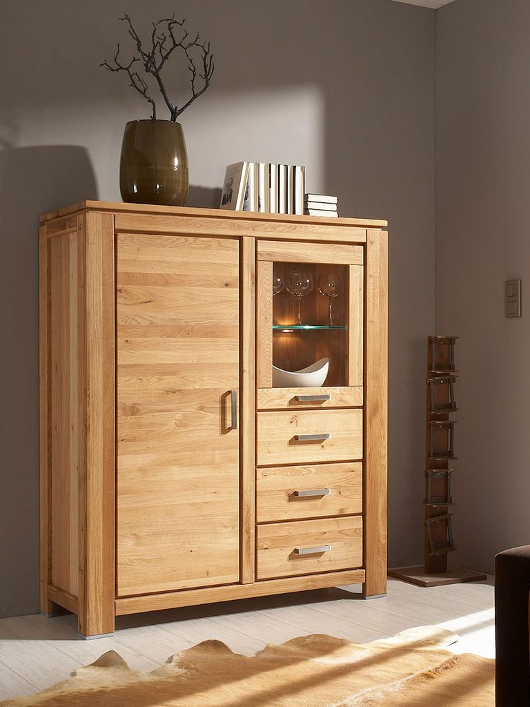 Gustowna i nowomodna szafka do salonu zrobiona z litego drewna dębowego najlepszego gatunku z fornirowanymi detalami idealnie dopasuje się do każdego wnętrza każdej jadalni oraz salonu. Dodatkowo stateczna forma i nowomodne, stylowe szlifowanie sprawią, że dębowa szafka niska szykownie upiększy niejedno pomieszczenie. Co więcej mebel ma funkcjonalne drzwiczki, przeszkloną część i pojemne szuflady. Dodatkowo ułatwiając przechowywanie i organizację zastawy stołowej, serwisów, sztućców oraz innych akcesoriów, a także pamiątek.