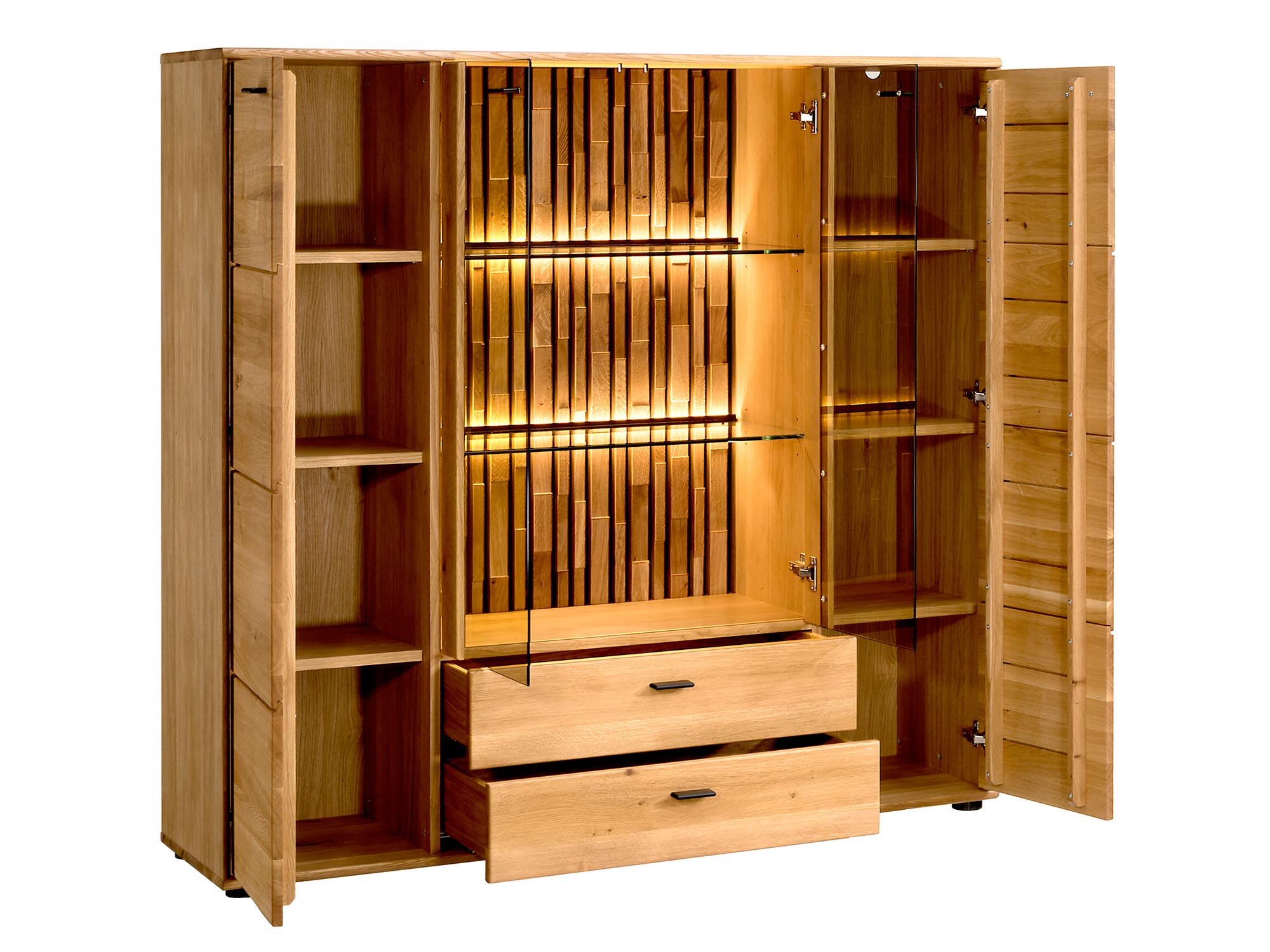 Każdy z nas uwielbia podziwiać przepiękne zachody słońca, które zapierają dech w piersiach. Witryna Sole przynosi tę samą magię do Twojego salonu. Model Sole emanuje spokojem i harmonią, a jego niegasnący blask podkreśla doskonałe oświetlenie. Połączenie oświetlenia z drewnianymi lamelkami wewnątrz tworzy niepowtarzalny klimat, a dębowe drewno nadaje pomieszczeniu naturalny i przytulny wygląd.
