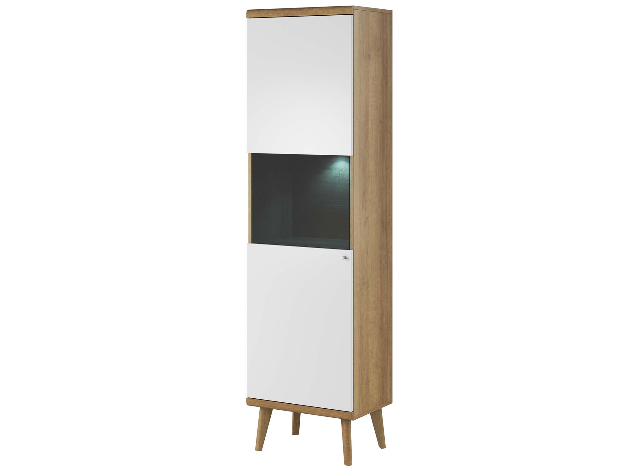 Elegancka Witryna Orys Połączenie Bieli i Dębu– Funkcjonalność w Twoim Domu