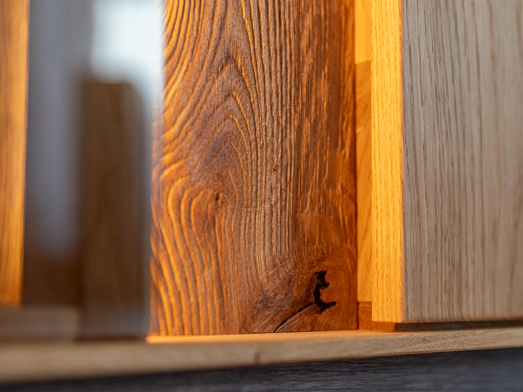 Wykorzystanie dzikiego dębu sprawia, że każdy egzemplarz Witryny Essentia jest wyjątkowy – naturalne słoje i sęki nadają jej unikatowy charakter, który podkreśla piękno natury. W połączeniu z olejowaniem, które dodatkowo wydobywa głębię drewna, witryna ta stanie się centralnym punktem każdego wnętrza.