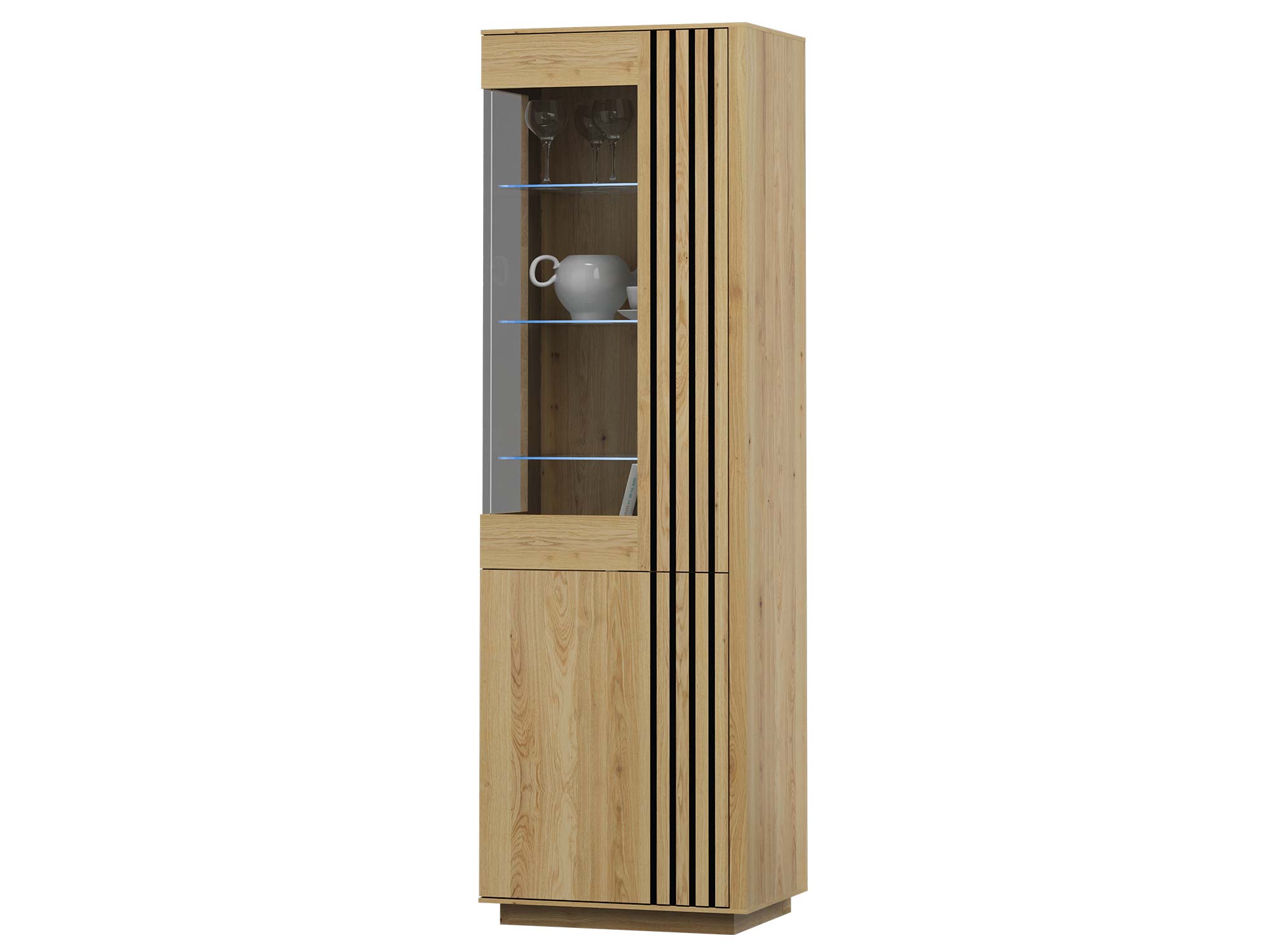Witryna 2DL Dorello to elegancka i praktyczna propozycja do nowoczesnych wnętrz. Smukła forma, ryflowane fronty i naturalne wykończenia sprawiają, że jest nie tylko miejscem do przechowywania, ale również wyjątkowym elementem dekoracyjnym. To inwestycja w piękno i funkcjonalność, która odmieni charakter Twojego domu.