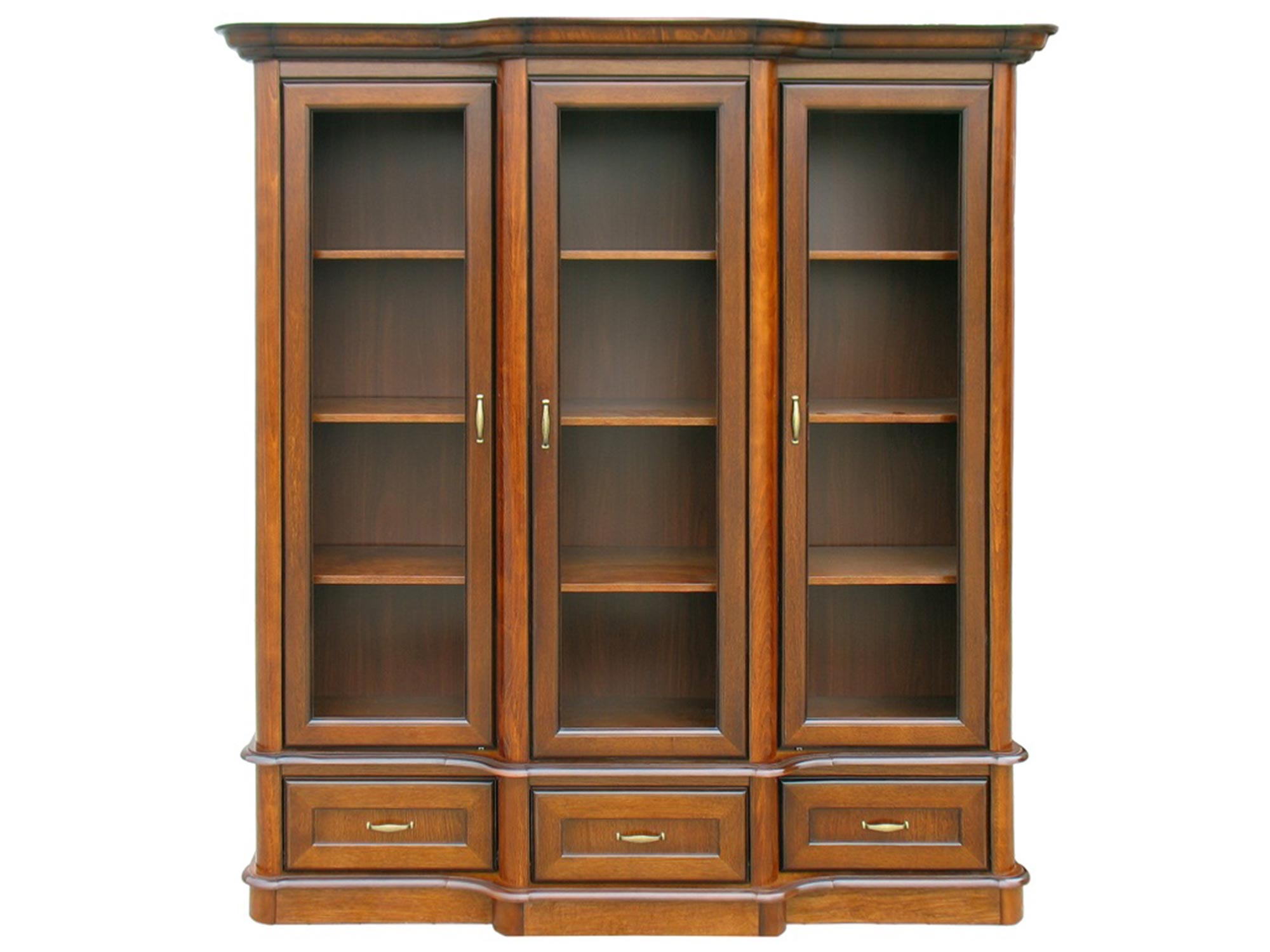 Drewniana witryna z przeszklonymi drzwiami, klasyczny design