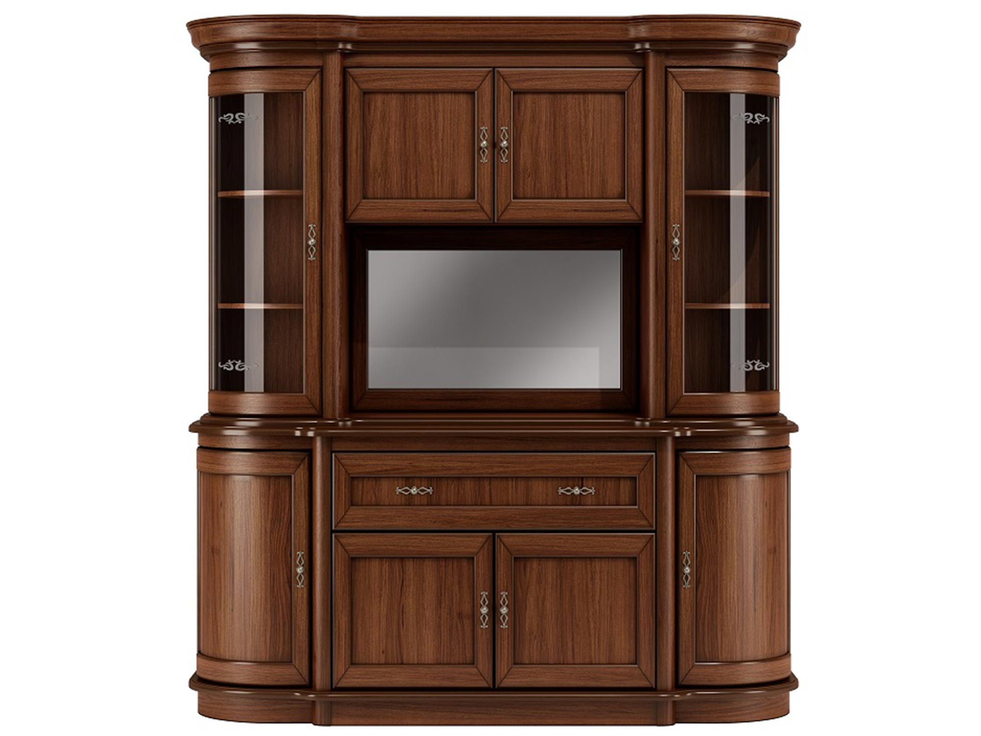 Drewniana witryna z przeszklonymi drzwiami i szufladami, styl klasyczny, ciemne drewno
