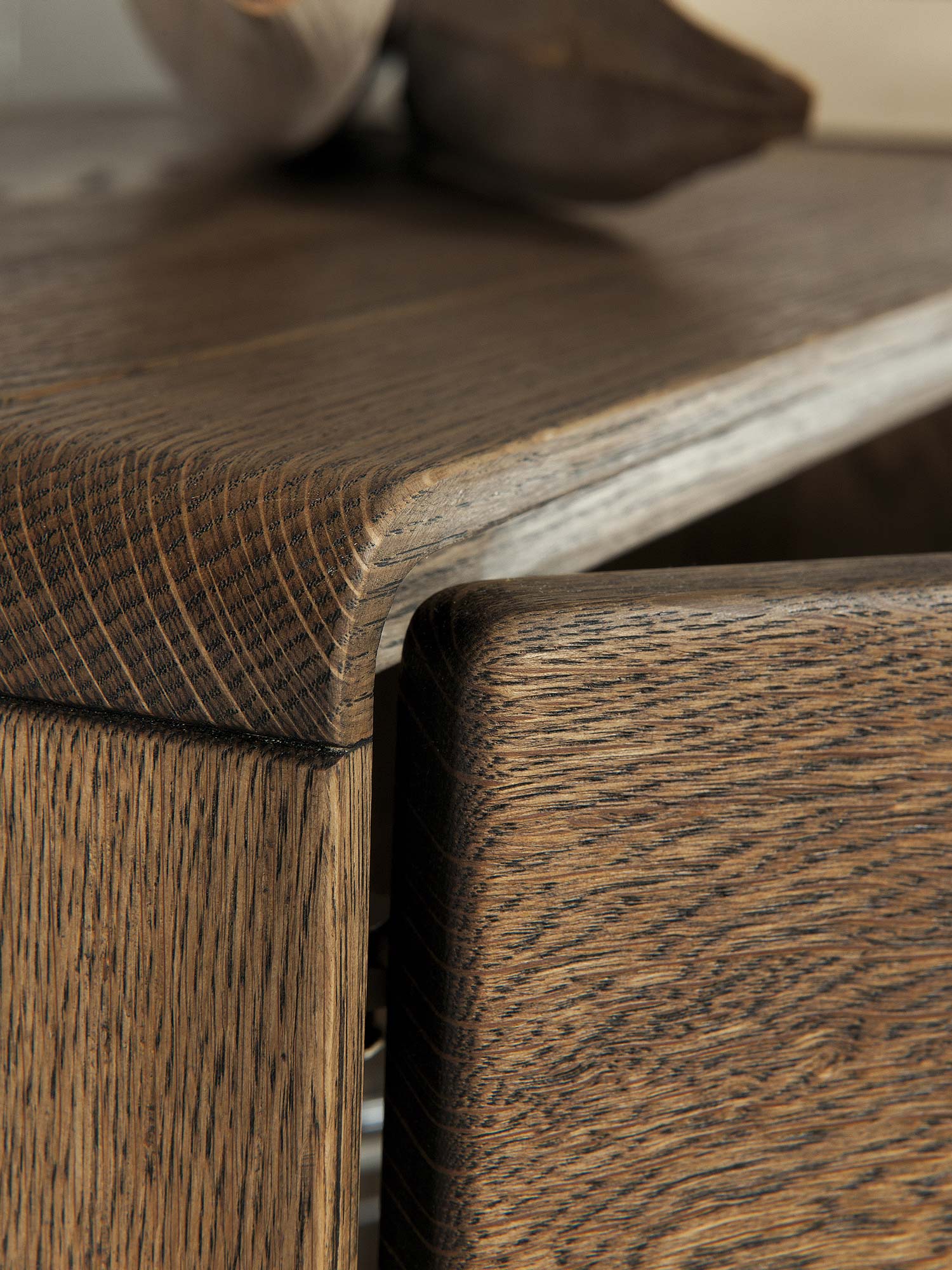 • Powierzchnia wykończona woskiem lub olejem, szczotkowana, czuć pory i słoje drewna