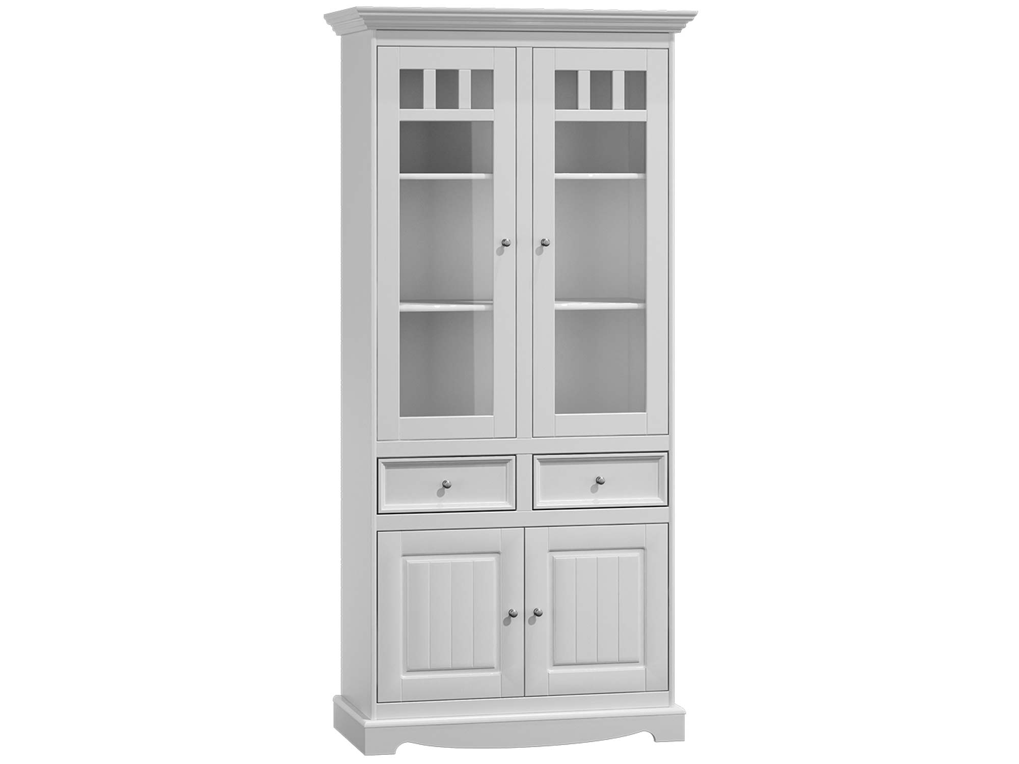 Oferowana drewniana witryna INGRID została zaprojektowana na styl prowansalski. Z tego względu doskonale wpasuje się w aranżacje o tejże stylistyce, jednak równie pięknie zaprezentuje się we wnętrzach glamour, art deco, vintage czy klasycznych. Dodatkowo ze względu na doskonałą jakość wykonania, mebel z pewnością posłuży wiele lat. Jest to zarówno propozycja do salonu jak i jadalni czy kuchni. Witryna posiada przestrzeń z półkami za przeszklonymi drzwiczkami, co daje wystarczająco przestrzeni na wyeksponowanie domowej zastawy, zestawu kawowego czy pamiątek rodzinnych. Co więcej dwie szuflady oraz przestrzeń zamknięta na samym dole daje dużo miejsca na zorganizowanie przestrzeni. Dodatkowo uchwyty stylizowane na stare złoto/srebro dodają witrynie wyjątkowego klimatu i charakteru vintage tworząc mebel unikalny. Ponadto subtelne frezy i ozdobny wieniec bezsprzecznie dodają uroku.
