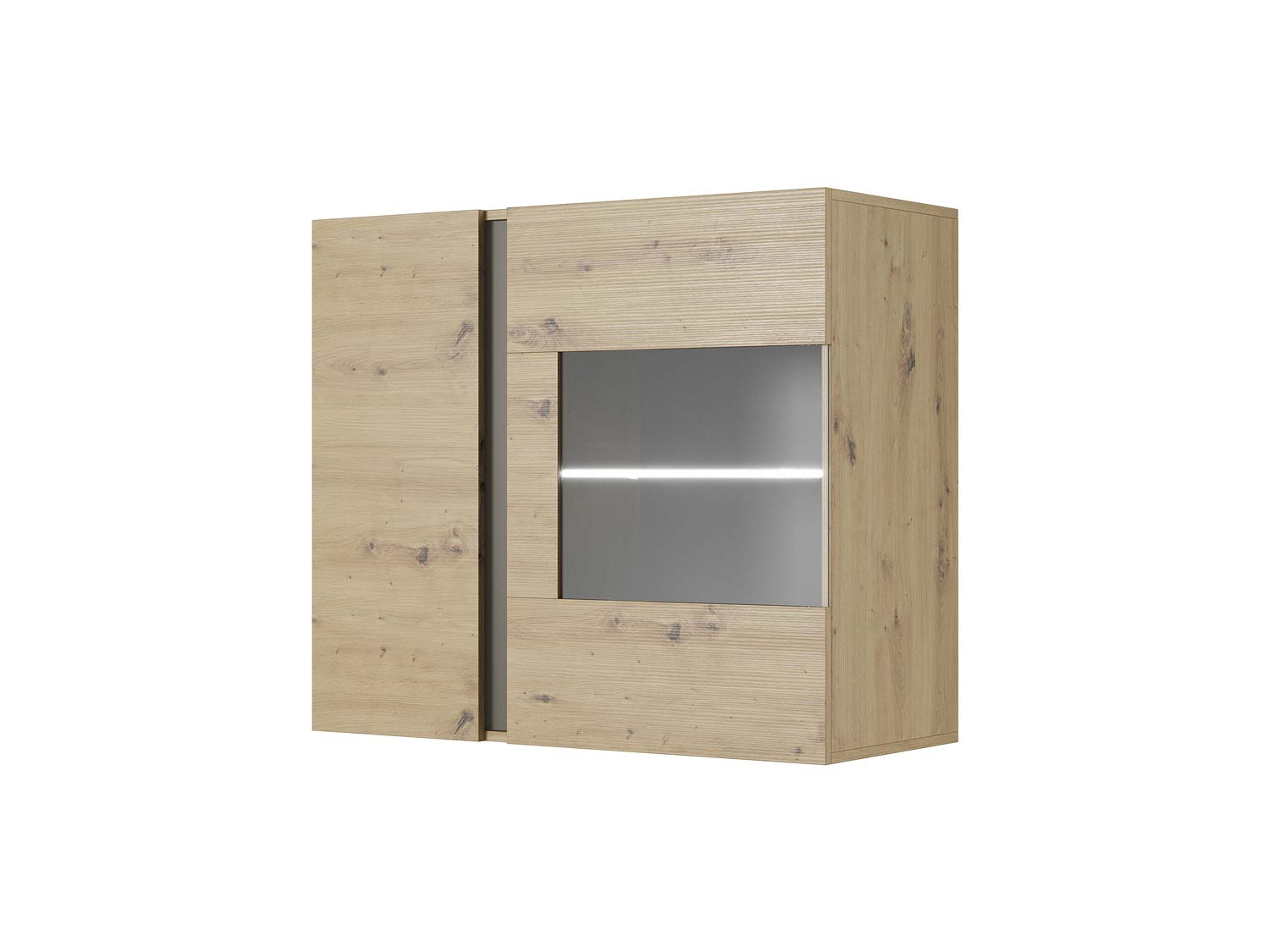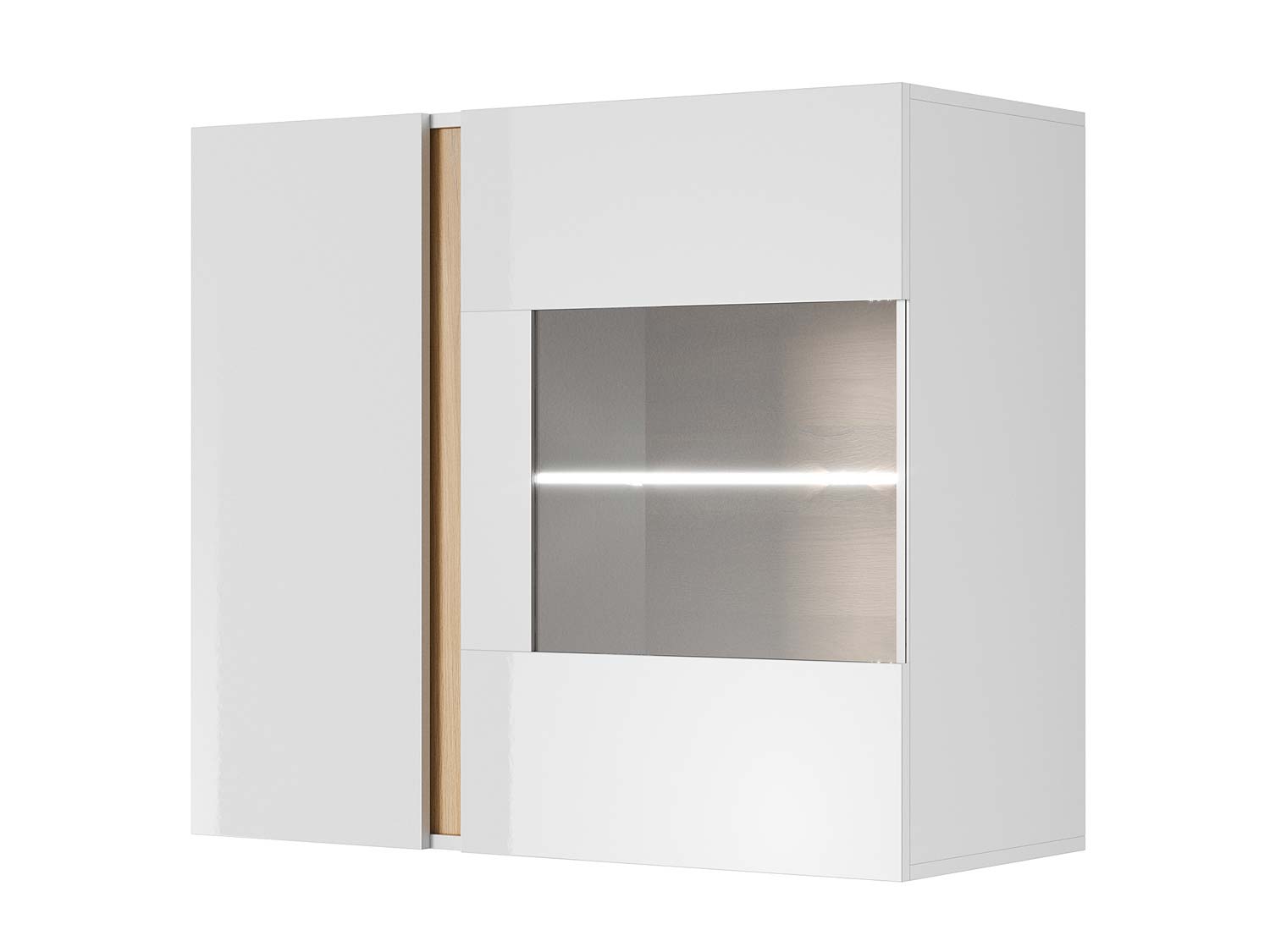Witryna z oświetleniem to nowomodny mebel do każdego salonu utrzymanego w podobnej stylistyce, wykonany z myślą osób, które cenią nowoczesny styl i klasyczną elegancję. Po pierwsze elegancka witryna wisząca nowoczesna została wyposażona w drzwi zwykłe i przeszklone. Ponadto posiada stylową szklaną półkę z opcją LED. Wobec tego mebel doskonale przyda się do eksponowania różnych przedmiotów i utrzymania ładu w domu czy mieszkaniu. Witryny wiszące do pokoju wyróżniają solidny korpus ciekawe wykończenie i kreatywne połączenie matów i połysku. Na dużym blacie bez problemu można ustawić wazon z kwiatami, książki czy inne drobiazgi. Do tego brak uchwytów i przeszklone części dodają jej stylu natomiast szklane półki prezentują się niesamowicie elegancko i gustownie. Co ważne witryna wisząca nowoczesna została wykonana z materiałów najwyższej jakości takich jak laminowane płyty meblowe i płyty HDF. W dodatku mebel zabezpieczono obrzeżem ABS, które sprawia, że jest ona odporna na otarcia i uszkodzenia mechaniczne.