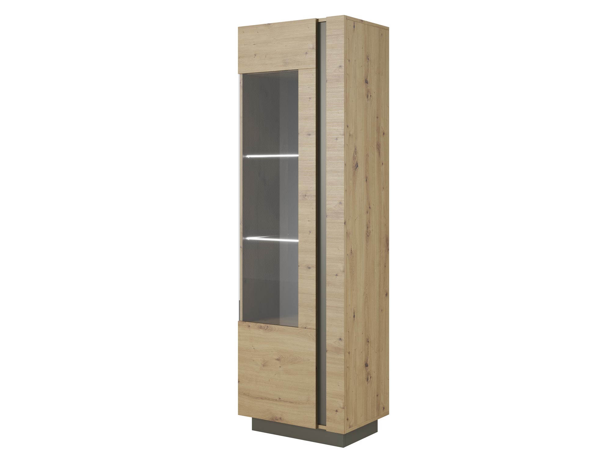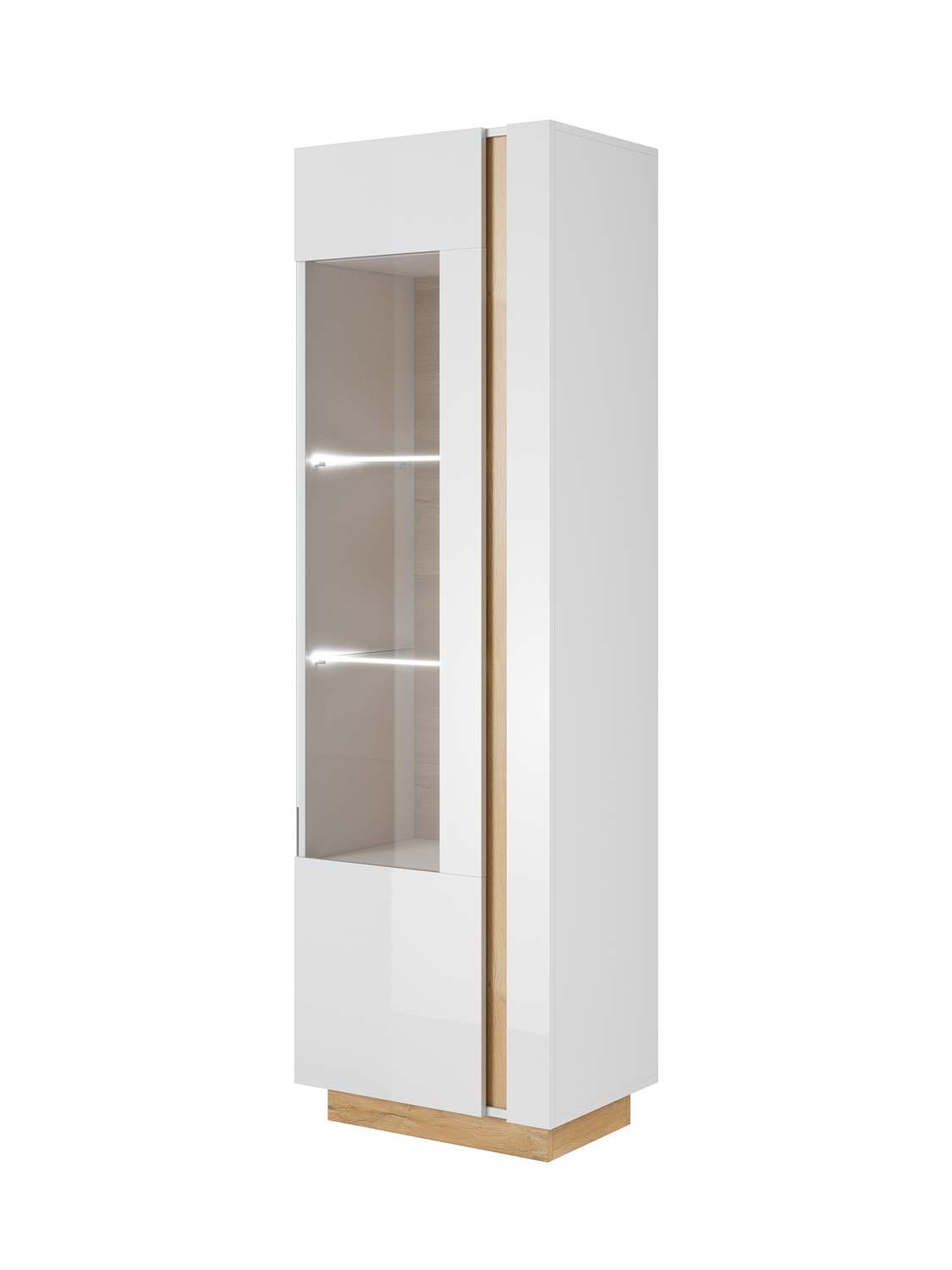 Oryginalna witryna na kieliszki to nowomodny mebel do każdego pokoju dziennego utrzymanego w podobnym charakterze, zrobiony z myślą o osobach, które cenią modernistyczny styl i ponadczasową elegancję. Co ważne witryna posiada przeszklone drzwi, za którymi mieszczą się piękne szklane półki. Wobec tego mebel idealnie przyda się do przechowywania zastawy, serwisu kawowego czy rodzinnych pamiątek. Ponadto mebel cechują solidny korpus oraz nietuzinkowe wykończenie. W dodatku brak uchwytów i przeszklone części dodają witrynie stylu natomiast szklane półki są niesamowicie eleganckie i gustowne. Co więcej mebel został wykonany z materiałów najwyższej jakości takich jak odporne na wilgoć laminowane płyty meblowe i płyty HDF. Do tego witrynę zabezpieczono obrzeżem ABS, które sprawia, że jest ona odporna na zniszczenia, otarcia i uszkodzenia mechaniczne. Stylowa witryna wysoka może bez problemu pełnić funkcję nie wyłącznie przechowującą, ale też może służyć do eksponowania wielu różnych pamiątek czy drobiazgów.