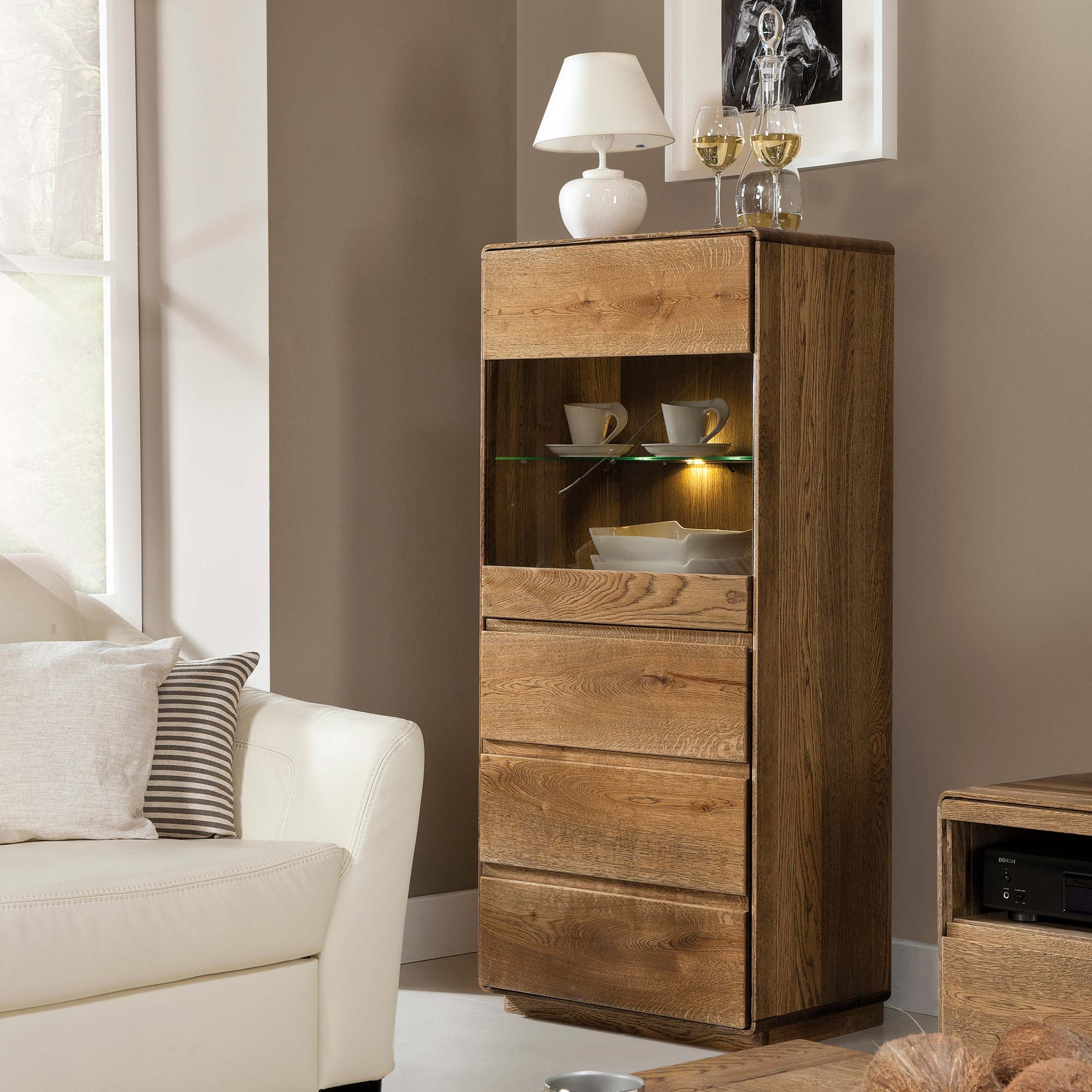 Stylowa i nowoczesna drewniana witryna ze szkłem zrobiona z litego drewna dębowego najlepszego gatunku z fornirowanymi detalami świetnie dostosuje się do każdej aranżacji niejednej jadalni czy salonu. Co więcej stateczna struktura oraz nowomodne, stylowe szlifowanie sprawią, że witryna z barkiem świetnie udekoruje każde pomieszczenie. Ponadto mebel ma funkcjonalne drewniane drzwiczki idealne do pełnienia funkcji barku oraz przeszkloną cześć, która znakomicie wyeksponuje szkło, kryształy lub pamiątki i rodzinne zdjęcia.