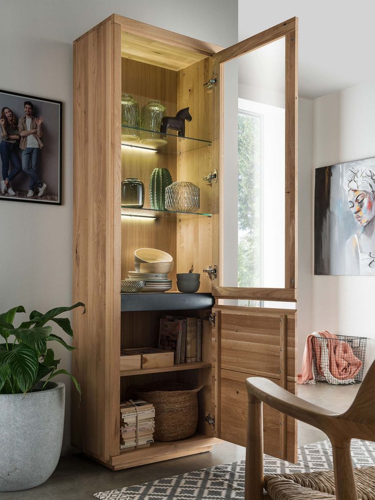 Witryna z Litego Dębu Opus – dodatek do nowoczesnych wnętrz