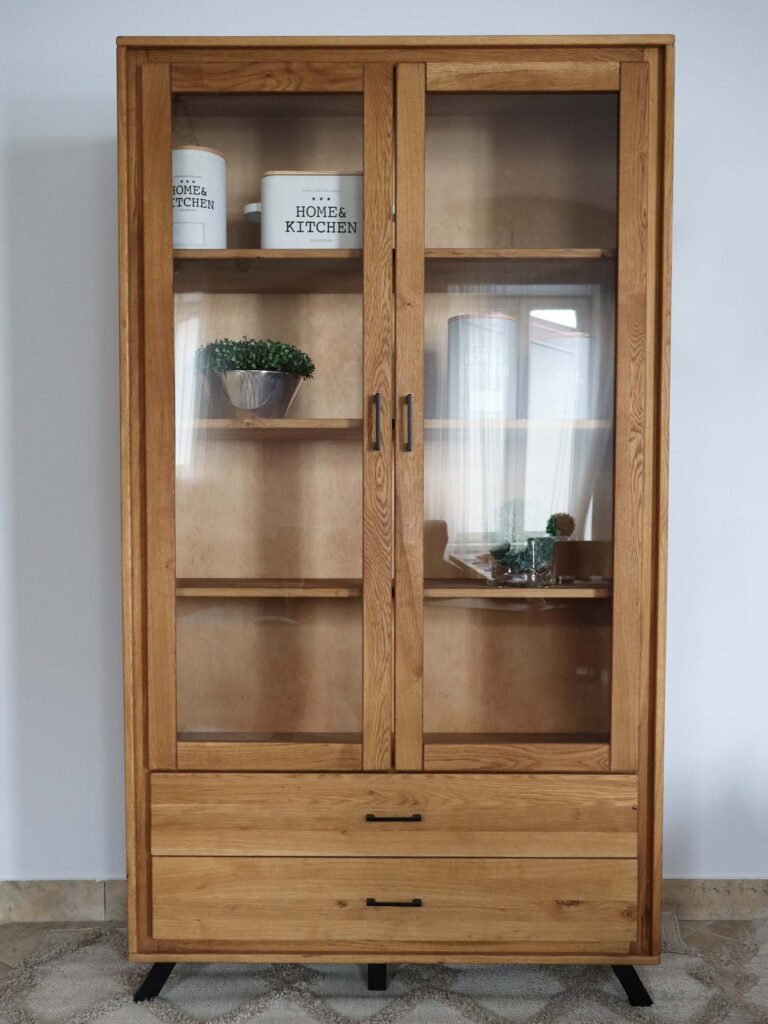 Wysoka Witryna Dębowa na Nóżkach ALAMOS LOFT