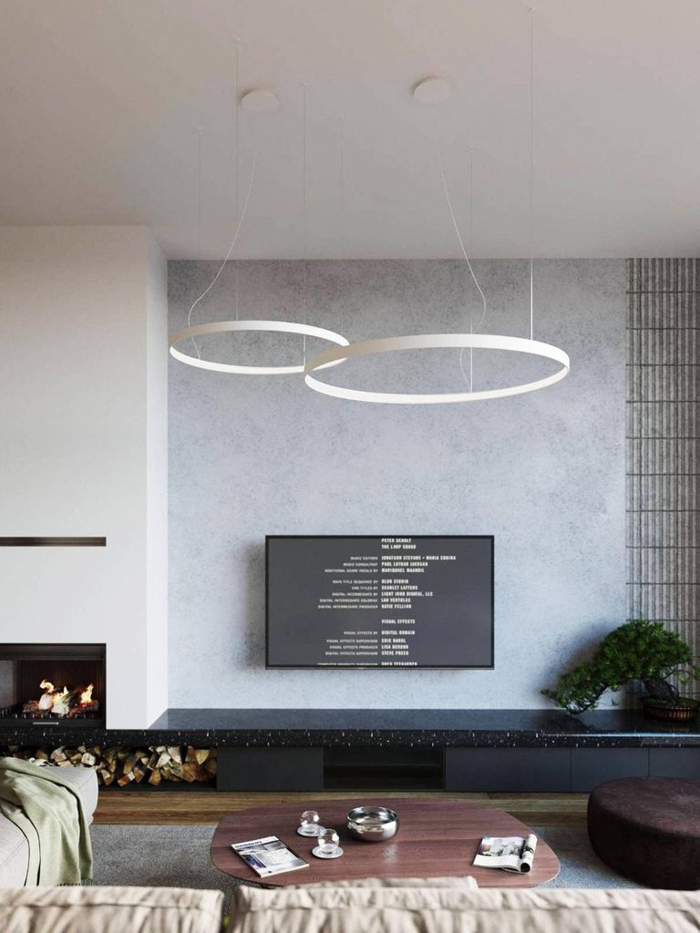 - Zones of light: Biała lampa wisząca może być centralnym punktem światła w pokoju, ale warto pamiętać o stworzeniu różnych stref świetlnych – miejsc, gdzie światło jest jaśniejsze, i tych, gdzie dominuje półmrok.